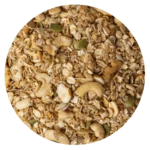 NUEZ – ALMENDRA – CASTAÑA CAJU – MANI SIN SAL- COPO AVENA HORNEADA – SEMILLA GIRASOL – SEMILLA ZAPALLO – MIEL – ESENCIA VAINILLA – ACEITE COCO – CANELA