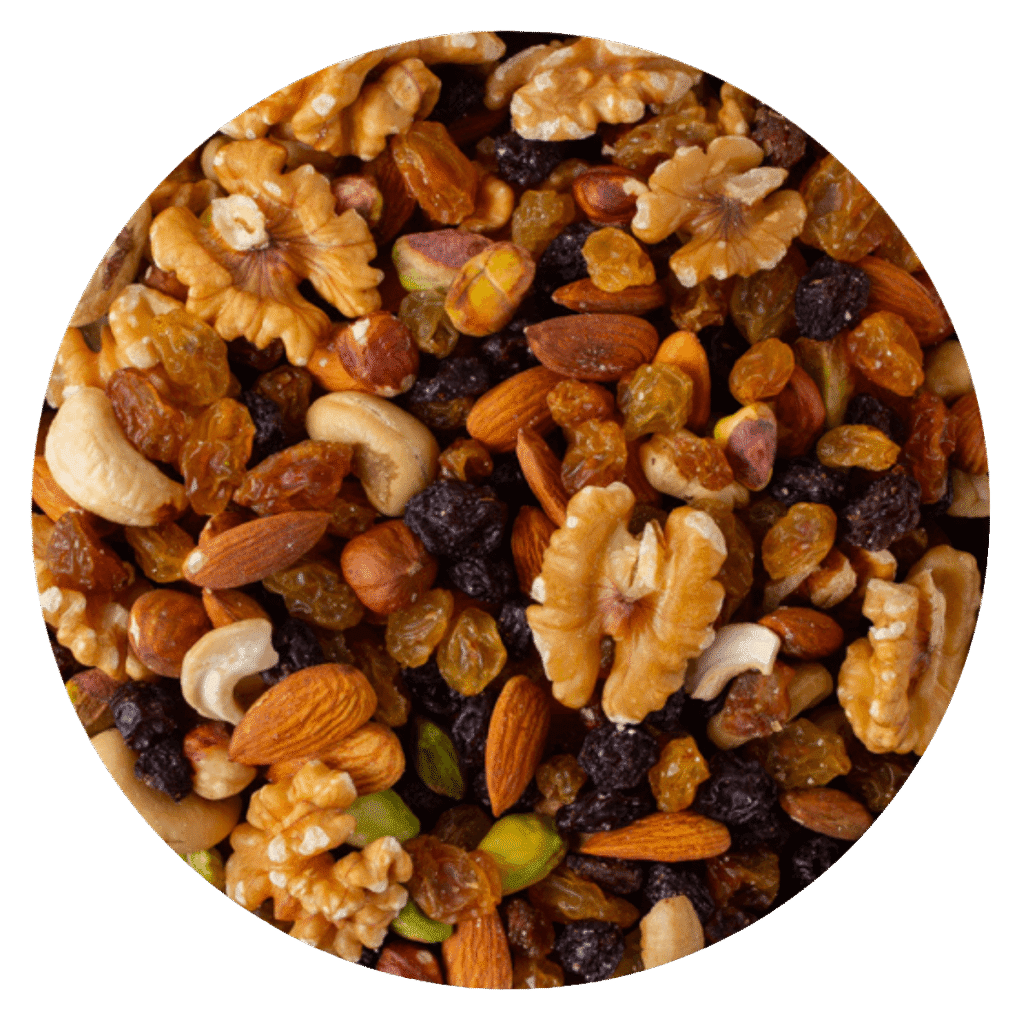 ALMENDRA ENTERA – CASTAÑA CAJU – NUEZ MARIPOSA – AVELLANA PELADA – PUEDE CONTENER PISTACHO PELADO NATURAL – PASA UVA MOROCHA – PASA UVA RUBIA